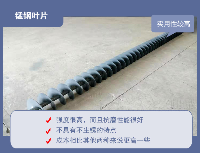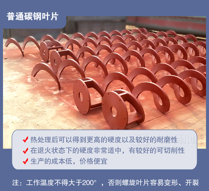 午夜精品久久久久久久应用广泛,常用于物料的输送,块状、颗粒状、粉状等物料,或者一些高温、腐蚀物料,代替了人工的搬运,效率更高。常见的螺旋叶片有普通碳钢叶片,高锰钢叶片以及不锈钢叶片。