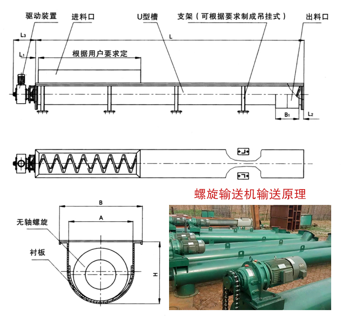 3、螺旋输送与其他输送设备相比较,具有结构简单、横截面尺寸小、密封性能好、可以中间多点装料和卸料、操作安全方便以及制造成本低等优点。它的缺点是机件磨损较严重、输送量较低、消耗功率大以及物料在运输过程易被破碎。