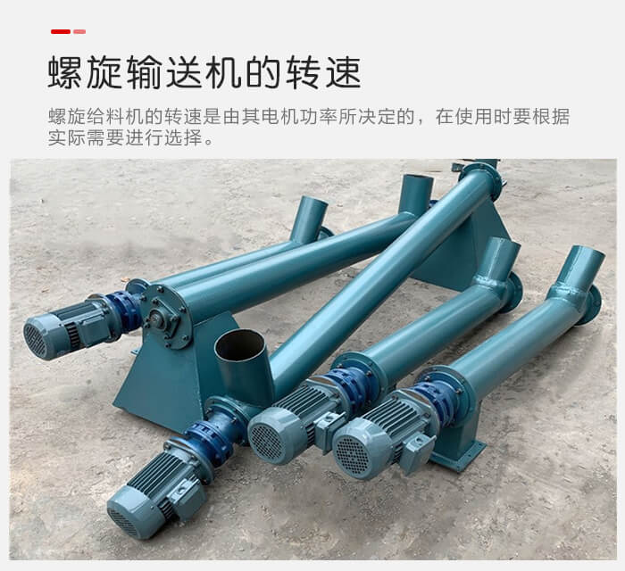 螺旋给料机的转速是由其电机功率所决定的,在使用时要根据实际需要进行选择。一般情况下,螺旋给料机转速越高,其输送量就越大,但是其转速不是越大越好,因为如果螺旋给料机转速超过规定的阈值,物料会因为离心力过大而向外抛,会导致无法输送影响螺旋给料机正常工作。