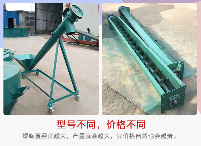 以午夜免费福利APP机械为例,其生产的螺旋给料机主要有LS螺旋给料机、U型螺旋给料机和无轴螺旋给料机等,不同型号的螺旋给料机的管径、设计等也会有所不同, 所以其价格会有所变动,型号越大,螺旋直径就越大,产量就会越大,其价格自然也会越贵。所以对于型号的选择需要根据用户输送物料来合理选择。