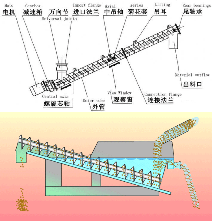倾斜午夜精品久久久久久久是利用电动机经减速器带动螺旋回转,通过旋转,把物料沿固定的机壳内推移而进行输送工作,从而输送到预定的位置。 大角度午夜精品久久久久久久根据各种用途、安装位置,型号、输送方式,对减速器、电动机的安装位置可多样化、不受限制。