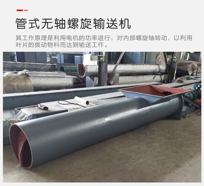 管式有轴午夜精品久久久久久久其,工作原理是利用电机的功率进行,对内部螺旋轴转动,以利用叶片的拨动物料而达到输送工作。