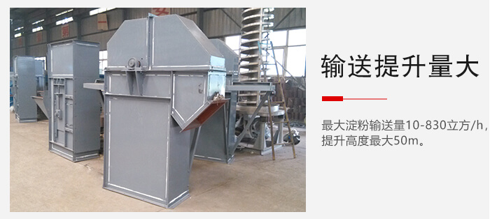 具有输送量大、运行平稳可靠、采用先进的设计原理和加工方法可无故障时间超过2万小时,淀粉输送量10-830m3/h,提升高度50m。