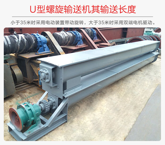 U型午夜精品久久久久久久的输送长的有两种,其一:壳体长度小于35m的其螺旋轴是采用一端单电动装置带动主轴的旋转,而当其长度大于35m时就可采用两端双电动装置带动主轴旋转。