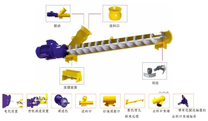 水泥午夜精品久久久久久久由进料口,出料口,电机,减速机,螺旋叶片,螺旋管体,等组成,附带电缆线,连接帆布套,吊挂钢丝绳等配件。