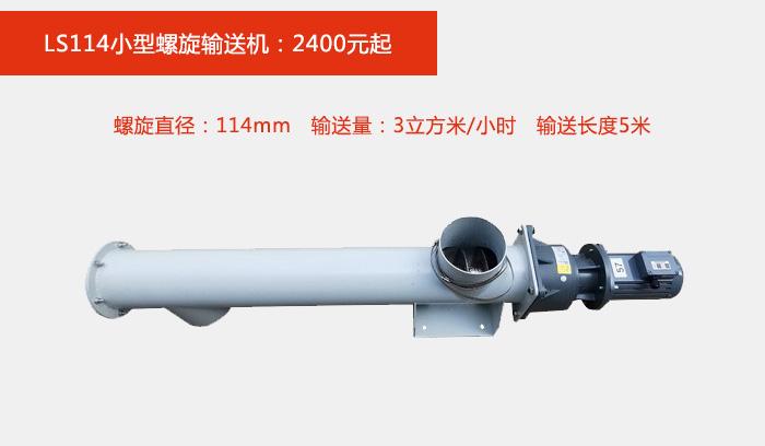 螺旋直径:114mm,输送量:3立方米/小时,输送长度5米,常规45°输送物料;