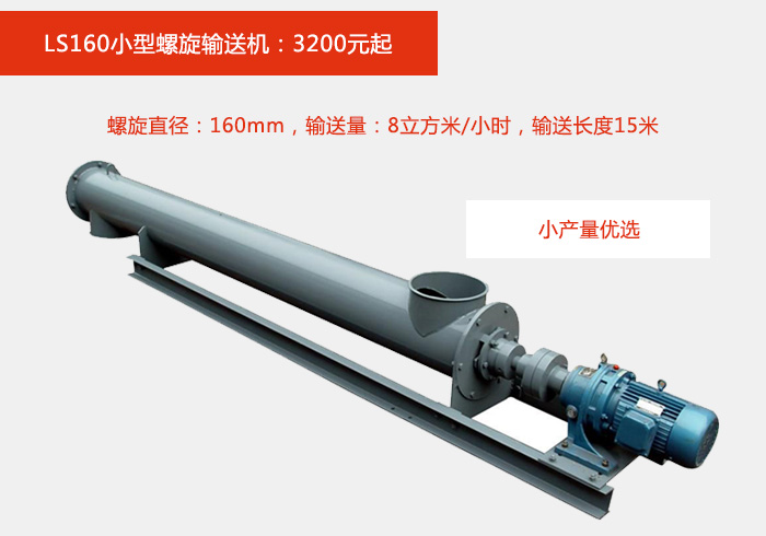 螺旋直径:160mm,输送量:8立方米/小时,输送长度15米,小产量用户使用较多的一款,特制减速机,扭矩大,转速快;