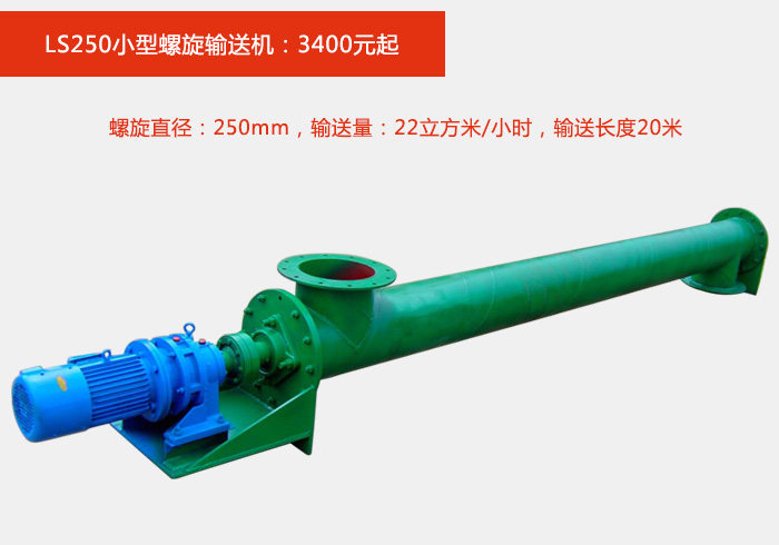 螺旋直径:250mm,输送量:22立方米/小时,输送长度20米,可添加电动型出料口,方便自动控制;