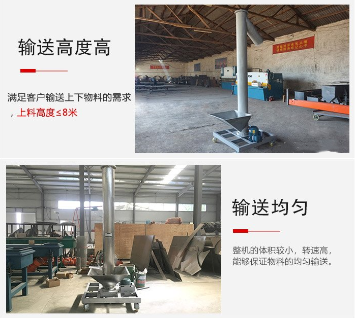 1、垂直输送高度可达8米,需要增加提升高度时,通常需要中间吊架或稳定器轴承来消除过度的螺旋偏转。