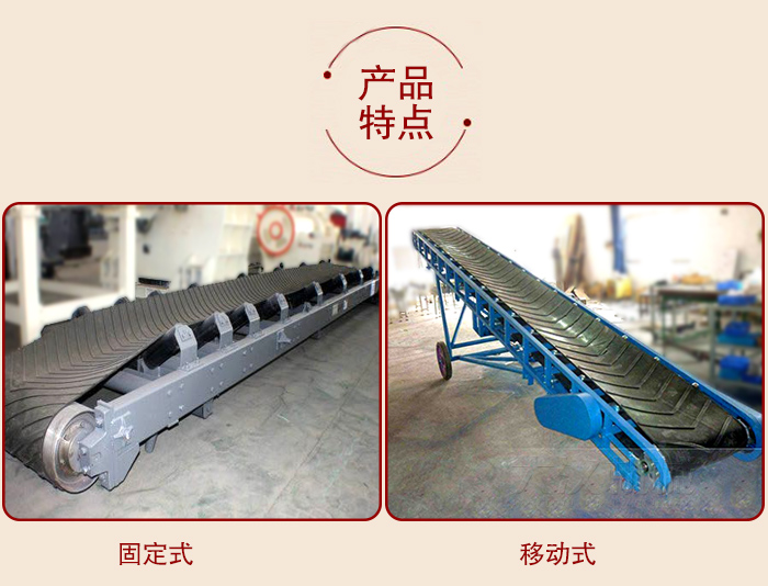 DTⅡ、TD75型带式输送机按其支架结构有固定式的移动式两种:按输送带材料有胶带、塑料带和钢芯带之分。输送机的工作环境温度一般在-10oC--+40oC之间,要求物料温度不超过70oC;耐热橡胶带可输送120oC以下的高温物料。物料温度更高时不宜采用胶带输送机。