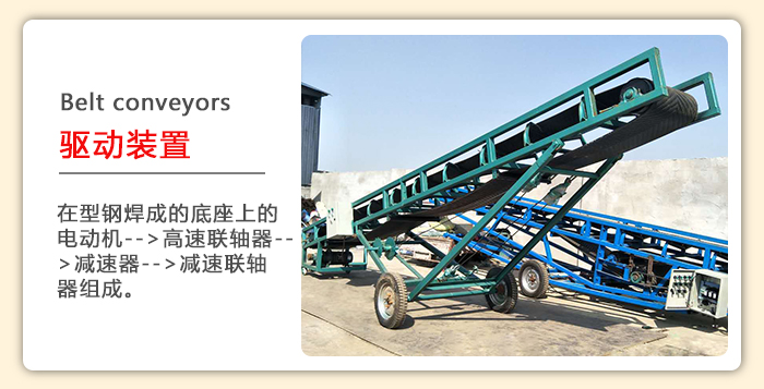 1.驱动部分:系由装置在型钢焊成的底座上的电动机-->高速联轴器-->减速器-->减速联轴器组成。根据布置要求:驱动装置设有左装和右装两种,另外本公司配有功率1.5KW到13KW,速度0.80、1.0、1.25的油冷式电动滚筒。
