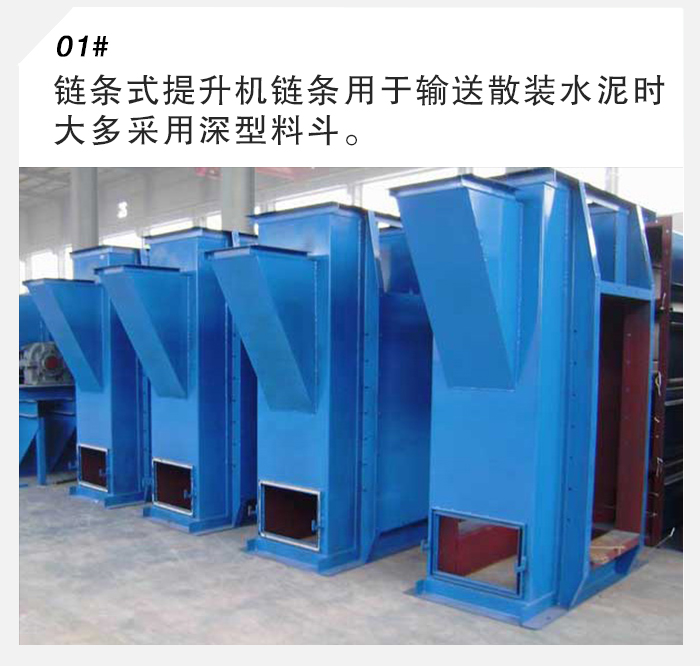 简介:链条式提升机链条用于输送散装水泥时大多采用深型料斗