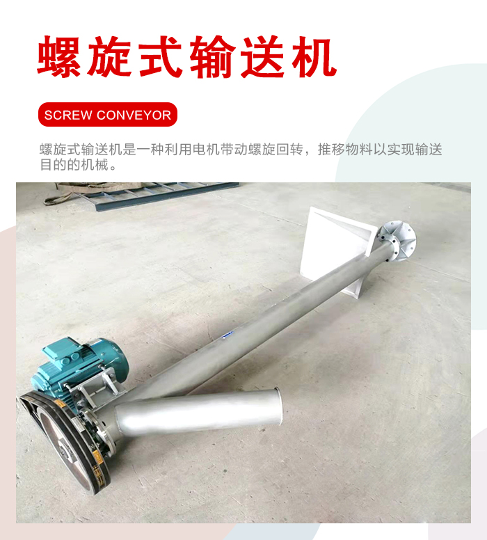 简介:螺旋式输送机是一种利用电机带动螺旋回转,推移物料以实现输送目的的机械。
