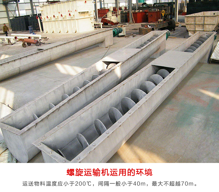 应用规模:螺旋运输机适用于各职业,如建材、化工、电力、冶金、煤炭、粮食等职业,适用于水平或倾斜运送粉状、粒状和小块状物料,如煤、灰、渣、水泥、粮食等,物料温度小于200℃。螺旋机不适于运送易变质的、粘性大的、易结块的物料。