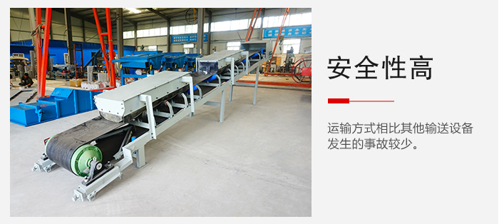 皮带输送机具有很高的安全性, 需要的生产人员很少,其他运输方式相比发生事故的机会比较少。不会因大块物料掉下来砸伤人员或由于大型笨重的车辆操纵失灵而引起事故。