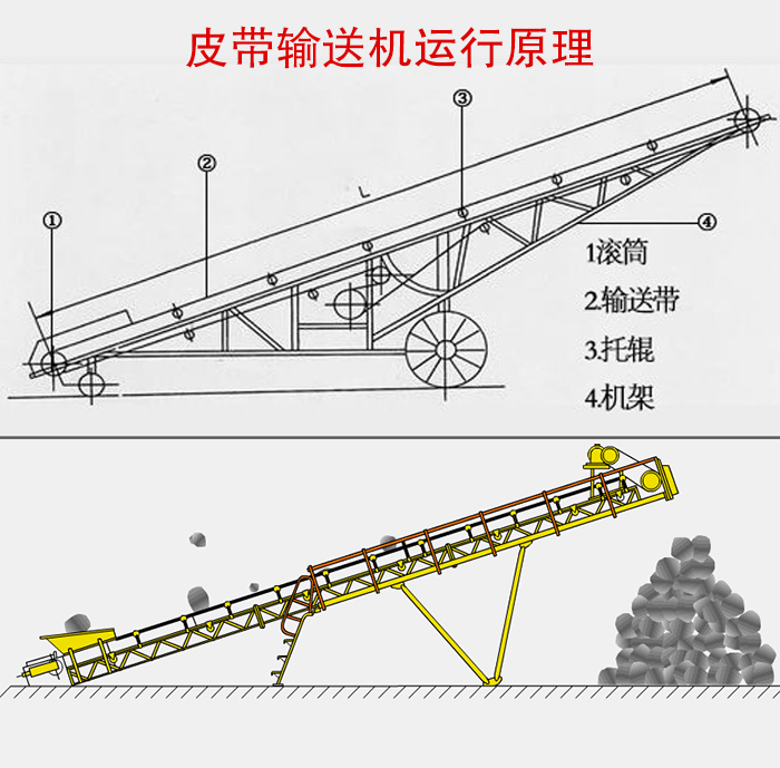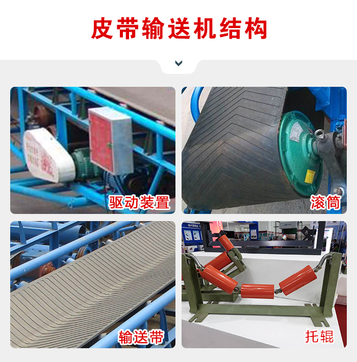 皮带输送机主要由输送带,托辊、滚筒、松紧装置等部分组成。