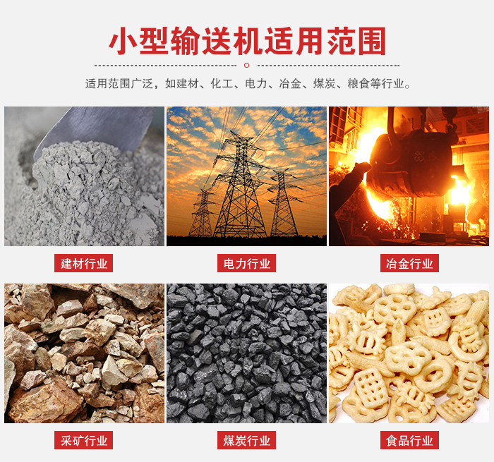 适用物料:粉状、粒状和小块状物料,如煤、灰、渣、水泥、粮食等