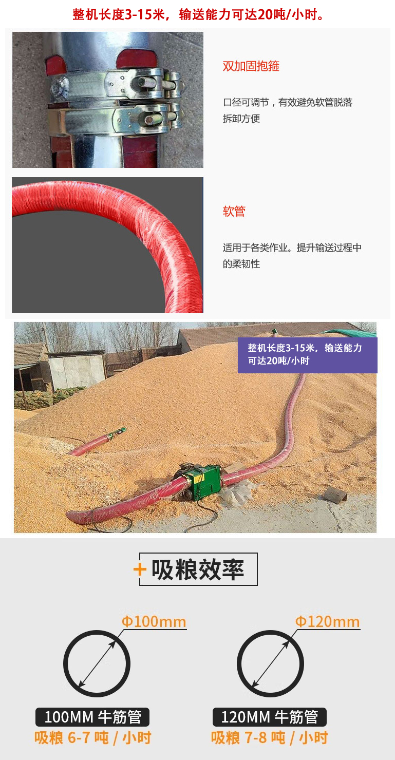 适用物料:可输送小麦、大豆、玉米、稻谷、高梁、塑料、树脂、大米等颗粒。