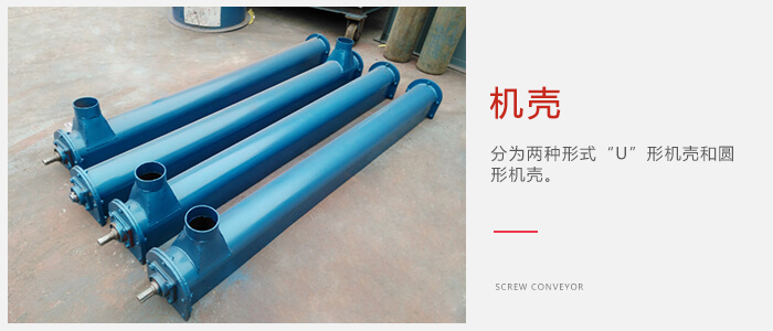 机壳:分为两种形式“U”形机壳和圆形机壳,圆形机壳主要是用作密封设备进料,圆形机壳的绞龙又叫密封绞龙。
